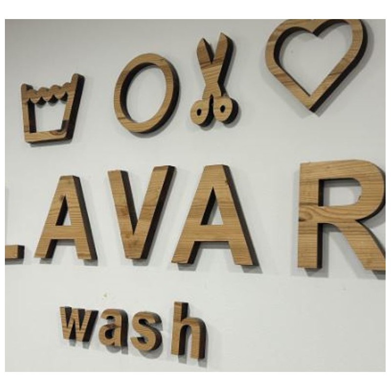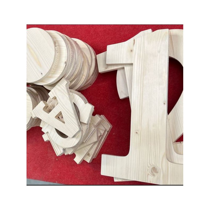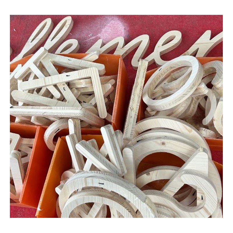 Découpe de lettres en BOIS Tripli ÉPICÉA de 19mm d'épaisseur.